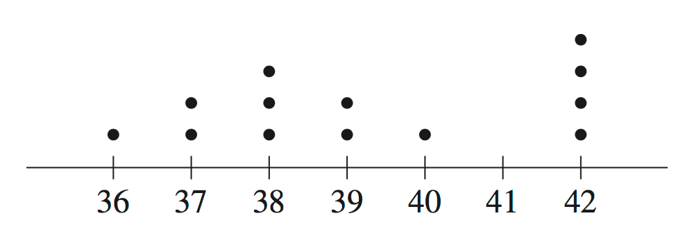 The dot plot shows the number of push-ups that 13 members of a fitness class can do in one minute.