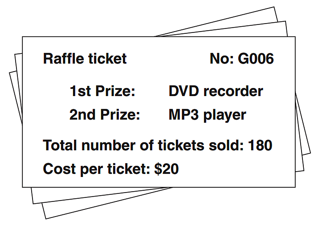 In each of three raffles, 100 tickets are sold and one prize is awarded.