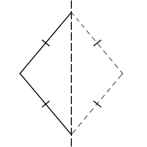 Geometry, NAP-H2-38 Eleanor reflects one of the shapes below across a dotted line. The shape and its reflection together make a rhombus. Which shape does Eleanor reflect? Show Answers Only `text(2nd image)` Show Worked Solution