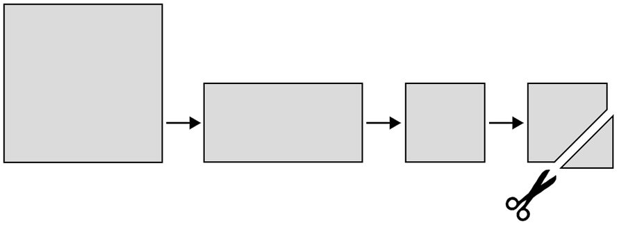 Geometry, NAP-G2-19 Sandra has a square piece of paper. She folds it in half twice and then cuts a triangle piece as shown below. What will the square piece of paper look like after Sandra unfolds it? Show Answers Only Show Worked Solution